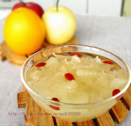 银耳:white fungus 银耳性平无毒,有益气清肠、滋阴润肺的作用,富有天然植物性胶质,有祛除脸部黄褐斑、雀斑、润泽肌肤等功效。