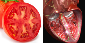 2 西红柿有四个腔室,并且是红色的,这与我们的心脏一样。实验证实,西红柿饱含番茄红素,高胆固醇患者要想降低心脏病和中风危险,不妨多吃点。