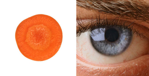 5 切开的胡萝卜就像人的眼睛,有瞳孔、虹膜,以及放射的线条。科学研究表明,大量胡萝卜素能促进人体血液流向眼部,保护视力,让眼睛更明亮。