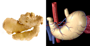 8 姜长得像胃,其辣素刺激胆汁生产,从而加速脂肪的消化。此外姜中所含的酶能使蛋白质变碎小,使油腻食物易于消化掉。