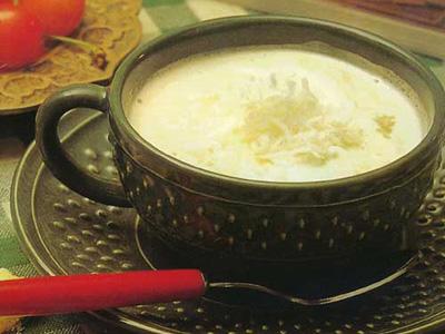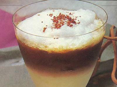 配制方法:在奶盆里倒入研细的深煎炒咖啡和肉桂等香料,搅拌均匀,然后倒入锅里,加些水煮沸3次,从火上拿下。待粉末沉淀后,将清澈的液体倒入杯中,这时慢慢加入橙汁和蜂蜜即成。