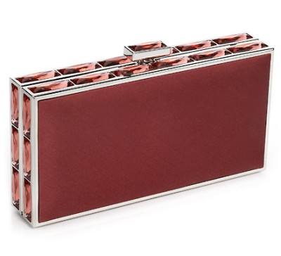 这款精致的晚宴包外形看上去像一个宝物匣,里面珍藏着主人随身携带的各种私人重要物品。这款手包的颜色有黑色、珊瑚红等,它的市场价格为1295美元。