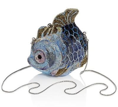 多拉晚宴包体现出了朱迪思·雷伯华丽的设计风格。设计师在这款鱼形晚宴包上镶嵌了许多各种颜色的奥地利水晶。大量水晶的点缀使’多拉’晚宴包看上去更像一件海洋艺术品。这款晚宴包的售价为4495美元。
