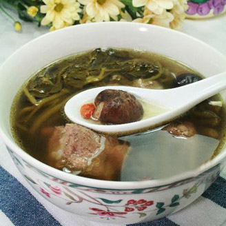方法:清水将罗汉果、白菜干洗净,猪肉洗净切片,一起放入煲中,武火30分钟,文火1小时。