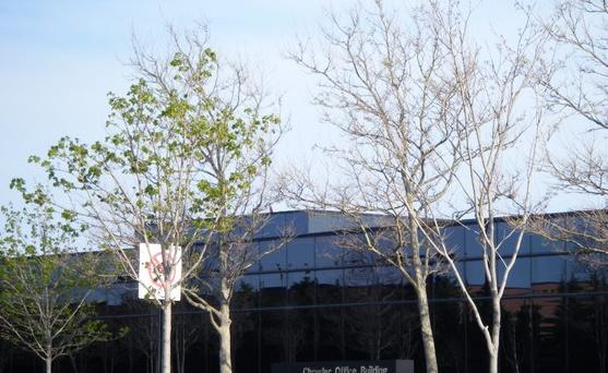 转到总部的另一面了。这是几个侧楼。没想到破产后的周末还有这么多的车,似乎还有人来上班。