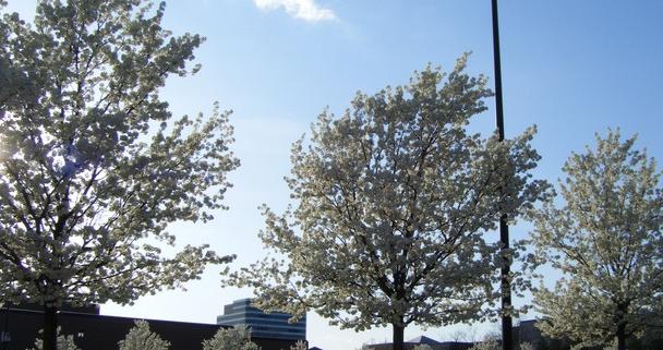 是侧楼金字塔外景。这里种了很多“花”树。春天开花真的好漂亮。还散发着清香