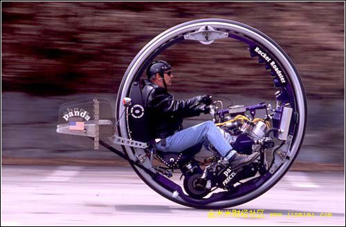 你见过独轮电动摩托车吗? 加拿大一位名叫本-加拉克的大学生发明了这种新型摩托车。这种摩托车的神奇之处在于:它可以通过骑车人身体重心的变化来驾驶,身体向前倾即加速,身体向后仰即减速.。身体左右倾斜即转弯。这种摩托车实际上有两个轮子.不过两个轮子并排在一起,之间的距离仅有2.54厘米。如此紧凑、小巧的结构可让骑车人即使在车流如织的道路上也能穿梭自如。安装在摩托车上的回转仪和控制系统能保证摩托车在速度高达64千米/时的情况下平稳地行驶。这让普通摩托车自叹弗如。
