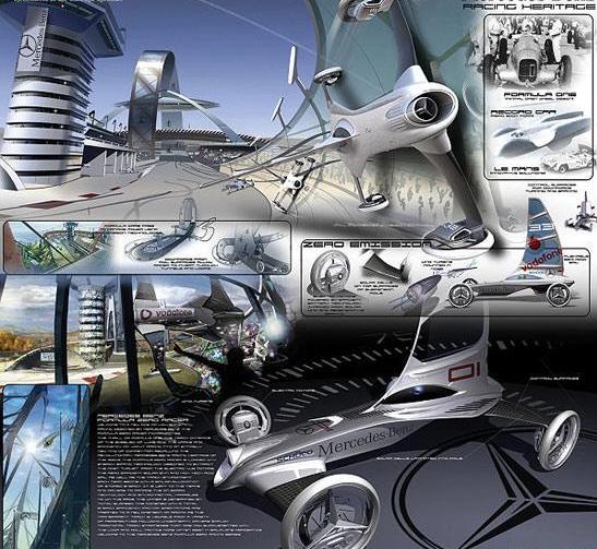 为了迎合未来的需求,奔驰认为未来将是替代能源的天下,因此针对此〝Formula Zero〞概念车作品,导入太阳能与风力概念,于车辆本体与四轮连结的部分,加覆上太阳能版将光能转化成动能,此外藉由车体上高耸的风板,也可让风力成为车辆驱动的动力,展现节能环保的极致发挥。