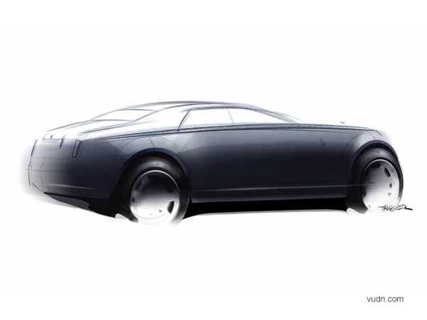 劳斯莱斯RR-4的的模型草图,这一将在2010年推出的系列车将比幻影系列的更加巧小。RR4系列将抛弃幻影系列的模型路线将从新专门为其设计一套新的引擎,这对于劳斯莱斯来来说是独一无二的。