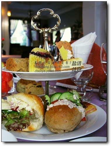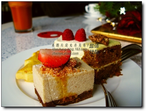 也是卖环境的店子,装修是花成本的,比上面4、5、6的那种要好得多,位子很宽敞,邻桌间基本不影响聊天。窗外是丁香花园的草地。下午茶也是成套出售,蓝莓蛋糕之类的普遍不行,口感很松散。