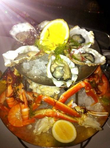 晚上来,夜景也能加分,但这个海鲜拼盘里的生蚝就很一般了,没有鲜甜味。