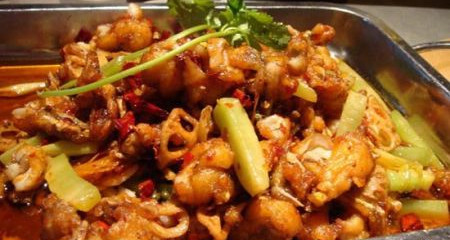 据说是任泉开的明星餐厅,里面既有川菜,也有东北菜,。招牌辣子鱼用的四川树椒,辣味不那么冲,鱼肉鲜香嫩滑;地三鲜里面土豆是炸过的,很香糯;鸭头又麻又辣。