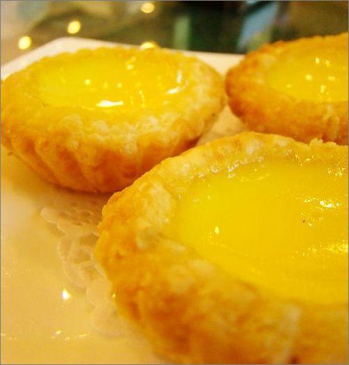 面包店里卖的蛋挞,一般分为广式和葡式两种。广式是糕饼底,葡式是酥皮底。广式牛油蛋挞的挞皮用黄油制成,透着一股曲奇的味道,内馅用料没有葡式的甜腻;葡式酥皮蛋挞的挞皮用猪油制成,刚出炉时口感特别酥脆,内馅甜腻,奶香浓郁。