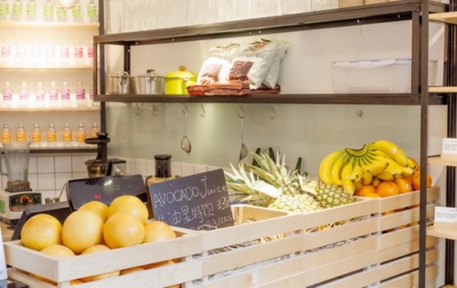 说到fancyfruit,其实不能笼统地用"果汁店"来描述这家只有18平方米、开了不到半年的小店,因为除去鲜榨果汁等水果冷热饮品,店里还有很好吃的蔬果派、自制酸奶以及各种水果制作的相关产品:新疆的干果、南京的枇杷膏等等。