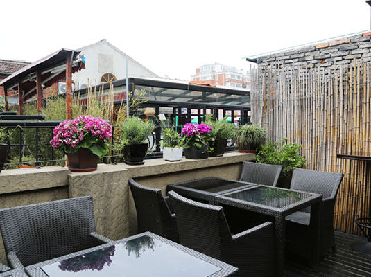 La Rosa餐酒馆坐落于1788广场3楼,毗邻静安寺商圈却有着一份自己的恬静与安逸。令人惊喜的是,它有一个和餐厅本身面积差不多大小的露台,可以让食客在夜幕下直接仰望星空,在这一带可谓相当难得。露台周边种植着应景的绿植,再配以人工的潺潺溪水让顾客产生仿佛置身在大自然之中的错觉。再配上地中海西西里风格的美食,实在是人生一大享受。