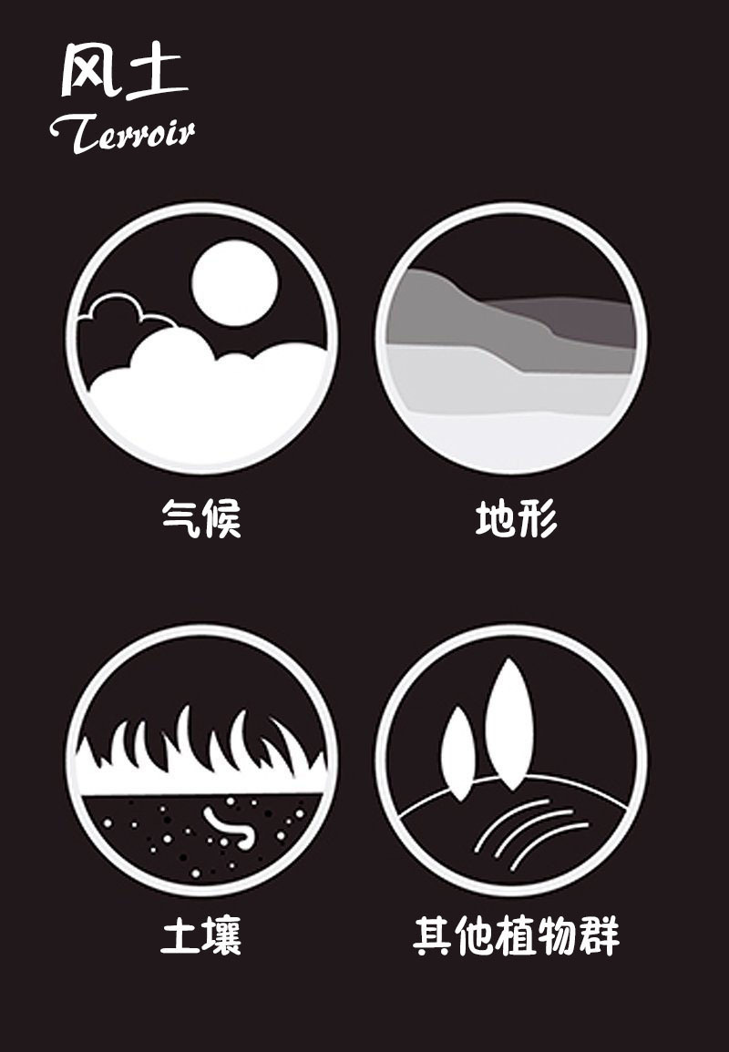 风土是一个比较“玄妙”的概念,简单地说,它是气候、地形、土壤以及周边植物群的“综合体”,通过影响葡萄的生长和风味来影响葡萄酒的风格和风味。