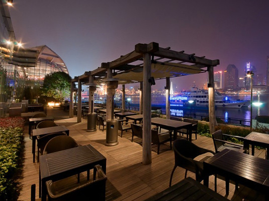 新视角餐厅酒廊位于外滩三号建筑之上,这间西式餐馆拥有着全上海最具魅力的露台之一。户外露台一直延伸到餐厅的另一头,提供了极佳的观景之地,以原木铺制,将黄浦江、外滩以及陆家嘴的广阔景致尽收眼底,或许再也没有比这更壮美的景观角度了。特别适合三五好友字悠闲的午后前来享受美妙下午茶,或者在魅惑夜晚,在这里一边品尝精致鸡尾酒,一边眺望对岸壮丽的景色,一切都美到极致。