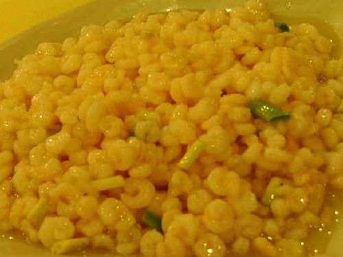 江苏、上海等地的名菜。以鲜活河虾去壳上浆,用滑炒方法烹制而成。成菜色泽素雅,肉质滑爽脆嫩,口味鲜香清淡,食后盘中无油、无汁、无芡,堪称一绝。