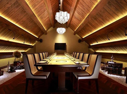 同样是走高端路线的火锅,主打牛肉和海鲜。牛肉中最值得一试的有霜降牛肉、极品雪花牛肉以及来自日本的顶级神户和牛,精选其后脑部位的肉质尤为出众。海鲜选料上乘、新鲜,象拔蚌、斑节虾以及鲍鱼的点击率都很高。餐厅非常注重细节的设计和打造,坐落于新天地的旗舰店开设在30年代建筑中,室内同样以中西合璧作为装饰风格,精餐具、摆设均十分精致考究,更设有尊贵的贵宾包间,体现着非凡的时尚气质。