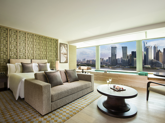 酒店配有奢华高贵的悦榕复式总统套房,位于酒店顶层12楼,在这犹如世外桃源般的空间里,悦榕好客大使将提供24小时私家贴心服务,竭诚为宾客提供全面优质服务。整个套房面积高达307平方米,复式跨层设计提供宽敞而私密的休憩环境。套房拥有一个卧房、独立的起居和用餐空间、私人泳池、木质日光浴甲板、吧台空间和室外花园及就餐区域。悦榕复式总统套房是追求豪华、精致和迷人景色以及悦榕“心静轩”理念宾客们的理想之选。同时,酒店还配有至尊外滩江景套房,180度全景式景观窗,是远离上海都市喧嚣、为心灵提供一片清净休憩之所的理想之选。