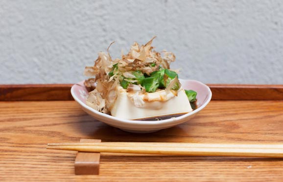 没有灯箱,没有广告牌,窝在华亭路弄堂里的恒春元门口,只有巴掌大的一块小木牌写着店名——恒春元食堂。打开普通得不能再普通的绿色铁门,却意外发现院子里有小小一方天地,有鱼缸、花草……让人有种恍若在京都的感觉。穿过蓝色木门,室内是 20 平方米不到的长方形空间,一张长条木桌,可以坐上六七个客人,俨然日本小居酒屋的模样。