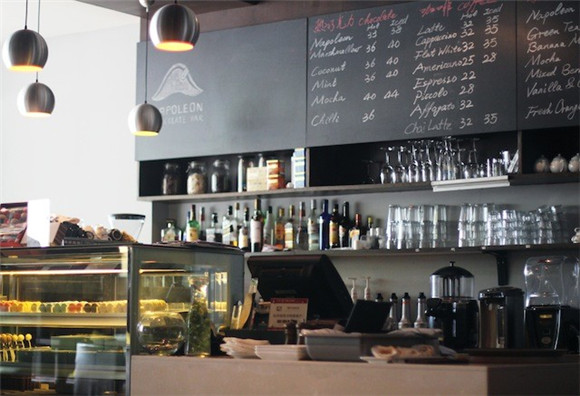 Napoleon Chocolate Bar:落地玻璃窗保证了室内的通透,店内色调多为黑、白、咖啡色,令人放松而愉悦