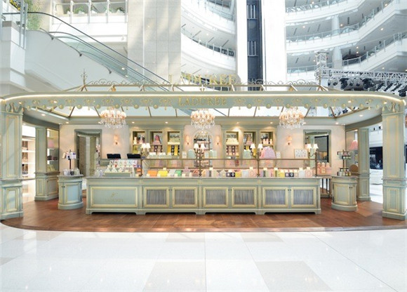 港汇广场的 Ladurée 装修风格和陈设,基本照搬了巴黎的店铺,同时售卖香薰蜡烛、果酱等周边产品
