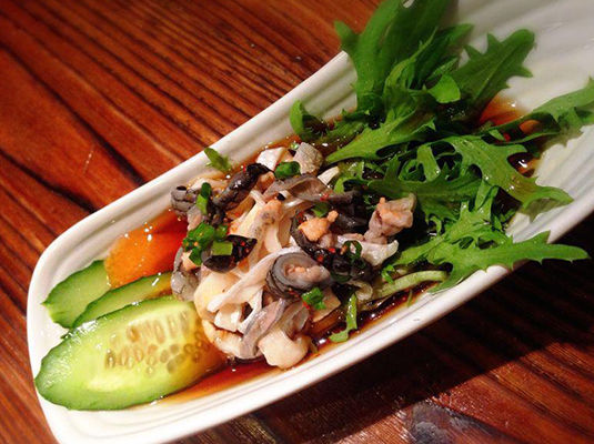 三文鱼肉的鲜美滋味无人不知,可你是否知道三文鱼皮也能做成一道美味佳肴。Kuta’s kitchen特别推出口感爽滑清新的三文鱼皮冷盘,以三文鱼佐新鲜三文鱼皮,切成丝之后以特调汁水温熟,最后淋上主厨特调口味酸甜开胃的冰镇汁水,配上水菜保证让用过的人胃口大开。这道创意横生的菜肴更是堪称夏天的开胃之王,不妨一试哦!