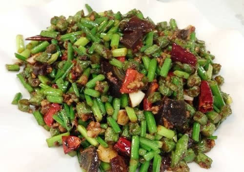 其实就是豆角、皮蛋和肉丁组成的小炒。关于这“苍蝇头”的来历,据说还有个有趣的小故事。豆角炒皮蛋本是台北餐厅很常见的一道小炒,但有一天老板听客人讲怎么菜里好像有很多苍蝇头,就被启发说干脆给菜起名叫“苍蝇头”好了。一个小误会成就了一道怪菜,而当时让客人混淆成苍蝇头的“罪魁祸首”,就是这道菜里的豆豉了。