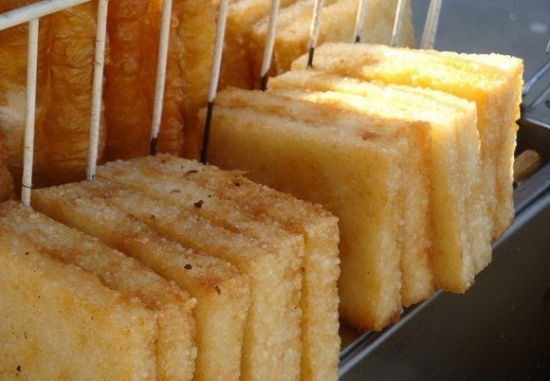 比起各种高级餐厅、台式私房菜馆里的粢饭糕,以米饭捣碎炸成正方形的老上海粢饭糕更是别有一番风味。天津路路口的“极品粢饭糕”只一部小推车,占据魔都市中心腹地一角,每天排队的人络绎不绝,香气绵延不绝。