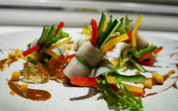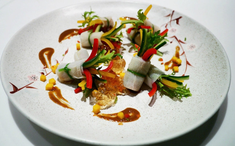 有幸能够在锦庐春季新菜没有正式推出之前就来尝了个鲜,连正式的名字都还没来得及取。追求完美的细节控、双鱼座大厨从色泽、口感和搭配都严格把控,所有的新菜式,不仅独具创意,整体口味也很清爽,很适合从春天迈入夏天这个时期吃,选用的食材都是当季才有的。