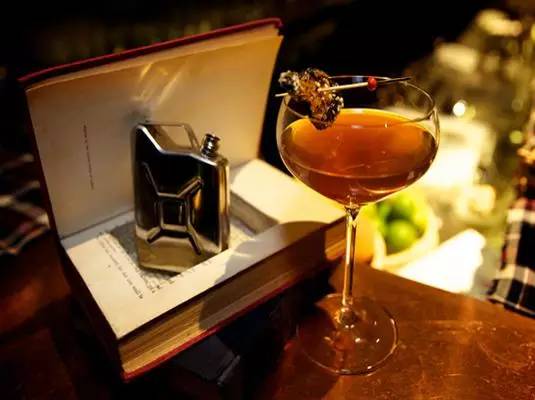 上海新晋酒吧Flask虽是地下酒吧,但却并未落入传统的俗套。藏身于The Press三明治吧一角的复古可口可乐贩售机后,貌似平凡无奇,但是推开这扇伪装的大门就会发现原来别有洞天。酒单上所有的酒被分为“女士”、“男士”、“经典”三种类别,Robin Hood Roy就是其中一款佼佼者。原本波旁、甜苦艾酒和柠檬草的混合已经堪称完美,但真正提升这款鸡尾酒的还是它的呈现方式。盛酒的酒瓶被藏在一本书的暗格内,让你莫名感受到了007邦德的那种特工乐趣。而这一种隐蔽神秘的感觉恰是与Flask本身昏暗的灯光相辅相成,这样一种独到的饮酒乐趣使得Flask堪称冒险家的天堂。