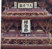 3、统治者借佛力和奇景,赞颂木塔,宣扬帝力3面:《竣极神工》、《天下奇观》、《木德参天》。