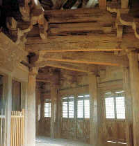 应县木塔耗用了上万方木材,而且是以大径木材为主。专家测得,木塔的312根木柱中,最粗的直径64厘米,最细的直径48厘米。至于各层的大梁,更是粗得现在少见。